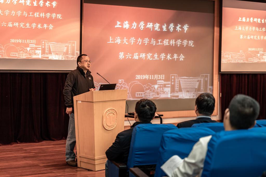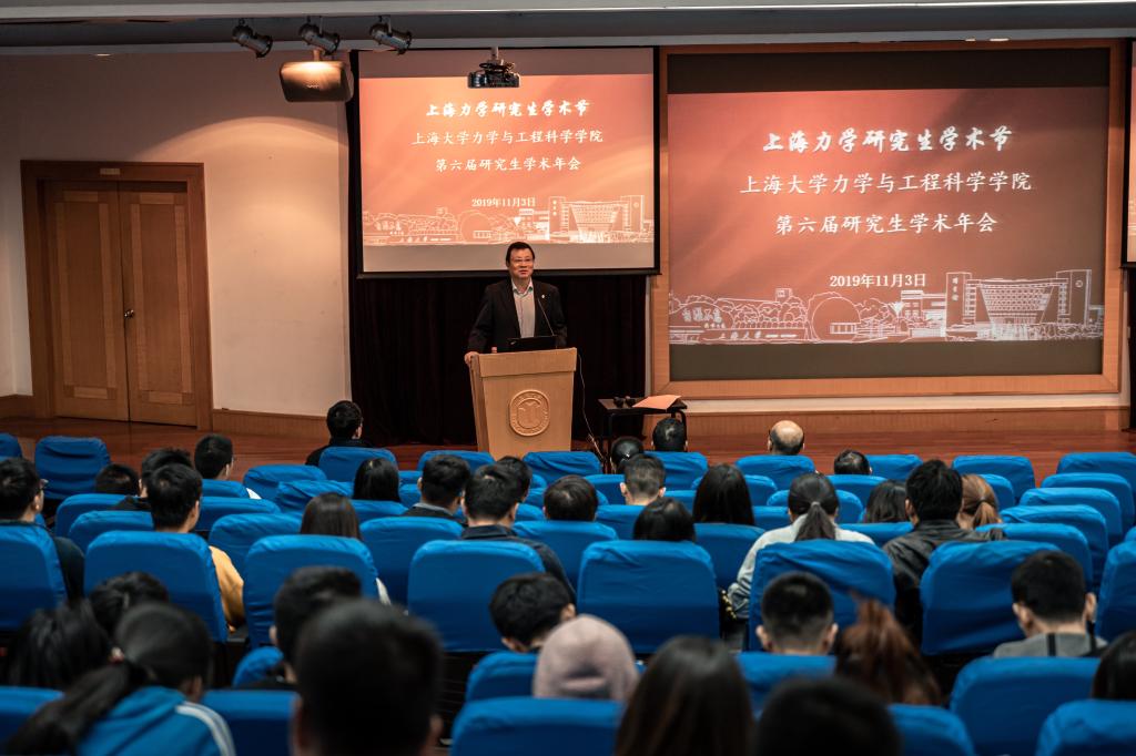 11月3日上午,上海力学研究生学术节暨第六届英国正版365首页研究生学术年会在365(VIP)英国上市宝山校区J楼方润华讲坛隆重开幕。力学研究生学术节是由上海市力学学会和365(VIP)英国上市共同主办,英国正版365首页、上海市应用数学和力学研究所承办的每年一次的力学研究生交流年会,旨在为新一代的力学研究人才提供相互交流学习的平台。365(VIP)英国上市副校长汪小帆教授出席开幕式。本次学术界邀请特邀报告嘉宾有国家杰出青年科学基金获得者同济大学李岩教授;国家杰出青年基金获得者清华大学宝音贺西教授;教育部高等学校新世纪优秀人才姜楠教授;国家优秀青年科学基金获得者英国正版365首页江进武教授。同时,参加此次学术节开幕式的还有来自复旦大学、上海交通大学、同济大学等兄弟院校的研究生代表们以及我校力工学院研究生们。会议由周全教授主持。