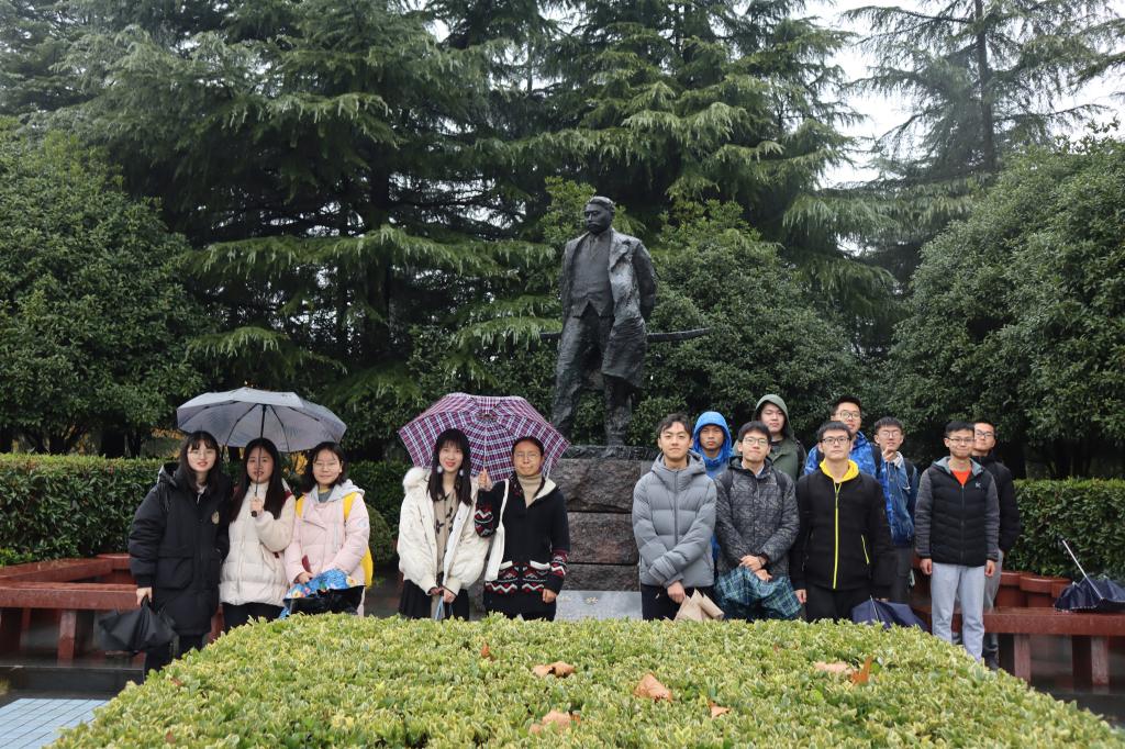 最后,团员们来到了最后一站——黄兴先生铜像前。大家仔细研读着石刻的碑文,瞻仰着先生的英容。这时,雨竟渐渐地停了,太阳并未立刻走出云外,但天空却也有了几分对比强烈的明亮。全体成员在重拾的日光下,合影留念,本次团日活动圆满结束。