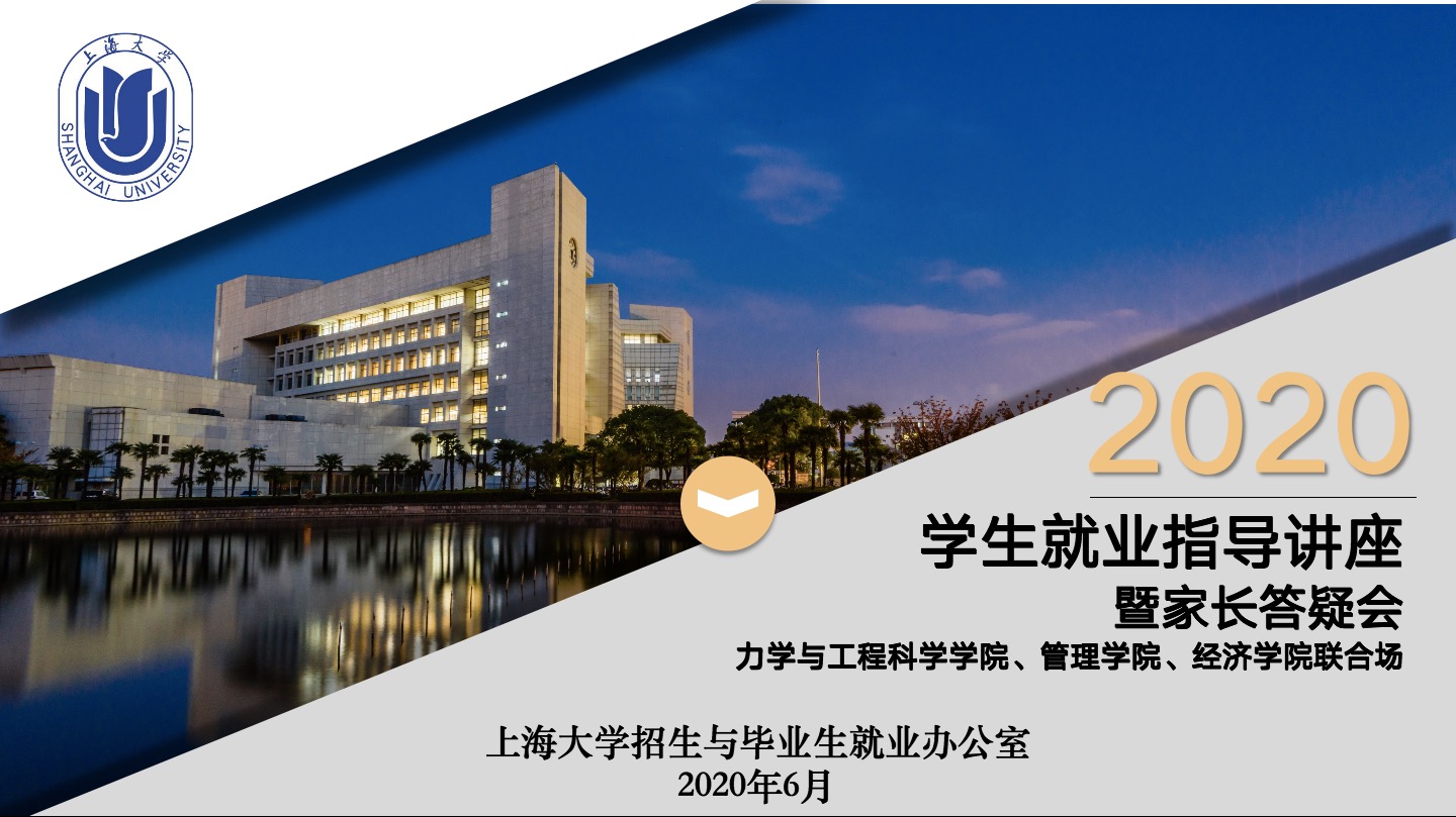 招毕办傅新华老师首先做就业促进报告。他详细对中央、上海市及学校有关就业的指导文件和政策进行了解读,他强调今年虽然被称为“史上最难就业年”,但同学们仍然要积极应对,抓住从国家到地方再到学校所创造出的就业契机,主动出击、不畏难,摆正就业心态,认真规划好自身就业路径。