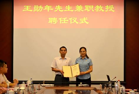 共建协议签署结束后,举行了隆重的王勋年副总师兼职教授聘任仪式,365(VIP)英国上市党委常委、副校长吴明红为王勋年副总师颁发了聘书。
