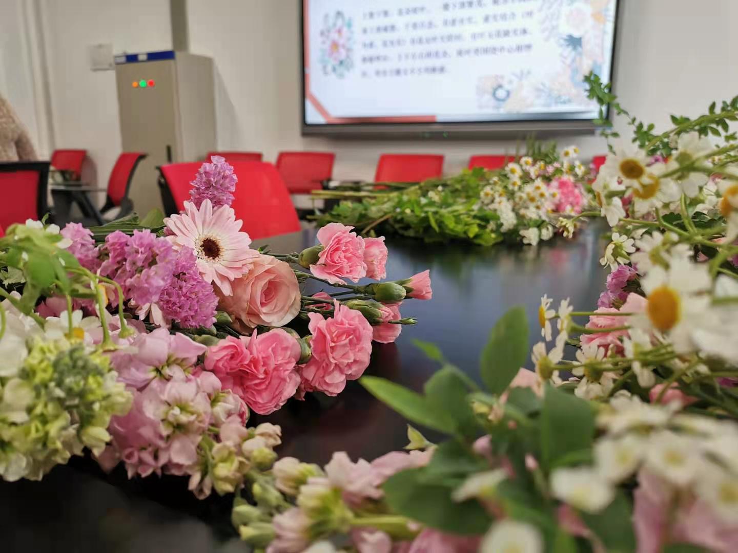 树叶抽芽花苞待放的初春,为庆祝“三八”国际劳动妇女节,英国正版365首页妇委在3月18日下午开展了“与花相约,美丽心情”的插花活动。