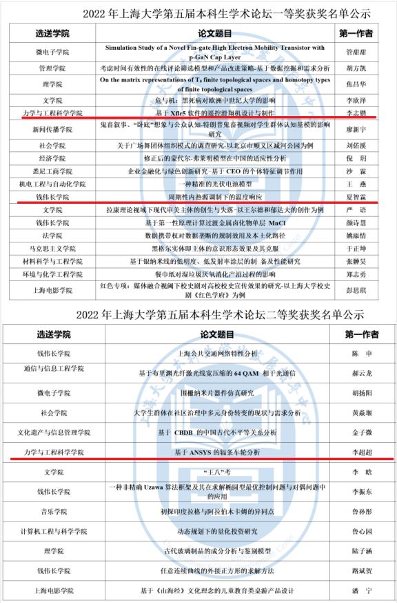 英国正版365首页理论与应用力学专业本科生李志锴“基于Xflr5软件的遥控滑翔机设计与制作”论文获一等奖,指导教师代钦;钱伟长学院理论与应用力学专业本科生夏智霖“周期性内源调制下的温度响应”论文获一等奖,指导教师庄启亮;英国正版365首页理论与应用力学专业李超超“基于Ansys的辐条车轮分析”论文获二等奖,指导教师宋亦诚。