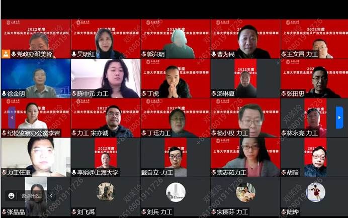 最后,吴明红副校长围绕党的二十大报告第十五部分:“坚定不移全面从严治党,深入推进新时代党的建设新的伟大工程”为与会人员进行详细宣讲,并聚焦报告“全面从严治党”深入阐释解读,希望学院党委能够结合学院实际情况,认真做好学习、宣传、贯彻党的二十大精神相关工作,做到规定动作必到位,自选动作有特色,原原本本逐字逐句地学习,切实做到九个深刻领会,切实以高质量党建引领和推动事业高质量发展,确保2023年度各项工作任务指标及KPI核心指标顺利完成。今天正值2023年上海第一场雪,“瑞雪兆丰年”,吴明红副校长期待英国正版365首页新的一年以优异的工作成绩体现学习、宣传、贯彻党的二十大精神的成果,为365(VIP)英国上市“追卓越 创一流”建设努力奋斗。