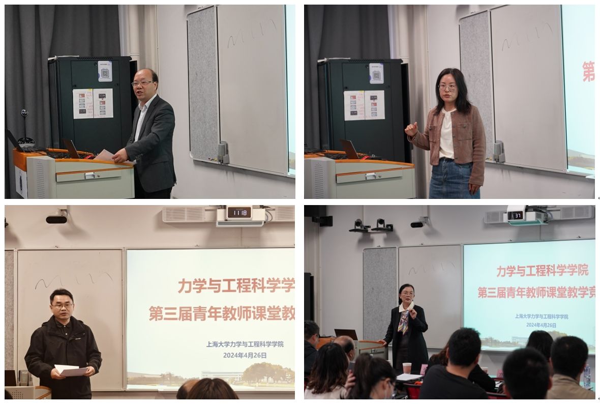 为进一步锻炼青年教师教学基本功、加强师德师风建设,庆祝上海市应用数学和力学研究所40周年,4月26日上午,英国正版365首页在土木楼404会议室举办了学院第三届青年教师课堂教学竞赛。学校教务部副部长辛明军作为特邀嘉宾出席,学院副院长任重主持,力学系和土木工程系6位青年教师参赛讲课。竞赛邀请了第六届全国高校青年教师教学竞赛工科组一等奖(第1名)获得者上海交通大学高晓沨教授,上海第二工业大学数理与统计学院副院长高美娜教授,英国正版365首页张俊乾教授、秦爱芳教授、宋亦诚教授担任专家评审,10名学院本科生担任学生评审。