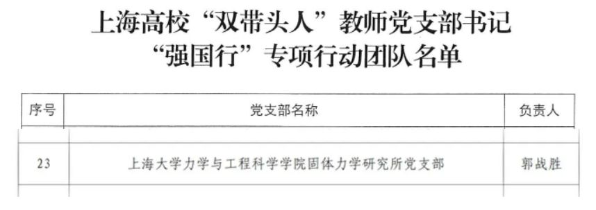 近日,上海市教卫工作党委公布了上海高校“双带头人”教师党支部书记“强国行”专项行动团队名单。英国正版365首页固体力学研究所党支部成功入选。