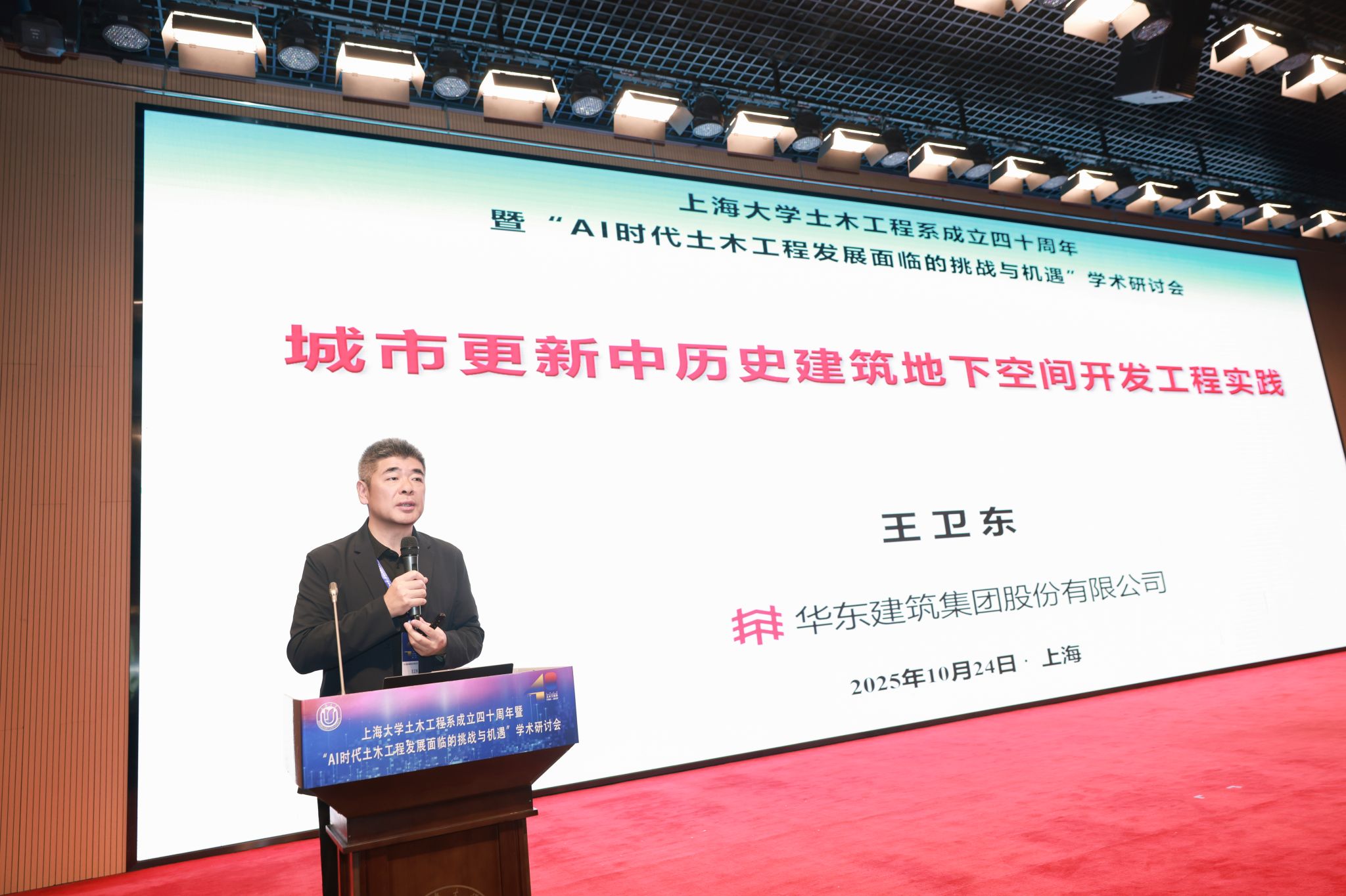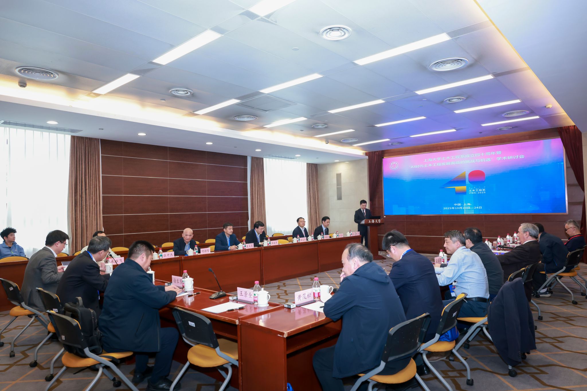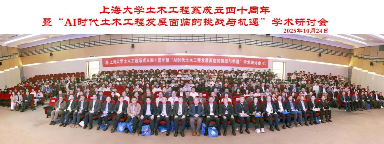 10月24日,英国正版365首页土木工程系成立40周年暨“AI时代土木工程发展面临的挑战与机遇”学术研讨会在宝山校区召开。中国科学院院士、重庆交通大学校长赖远明,中国科学院院士、同济大学教授李杰,中国土木工程学会副理事长、同济大学原副校长顾祥林,浙江工业大学党委书记蔡袁强,华东交通大学校长徐长节,上海应用技术大学原党委书记刘宇陆,江苏大学副校长王景全,365(VIP)英国上市原副校长叶志明,全国工程勘察设计大师、华东建筑集团股份有限公司总工程师王卫东,上海建工集团股份有限公司总工程师陈晓明,上海隧道工程股份有限公司总工程师朱雁飞,上海市土木工程学会、上海市地质学会、国内相关高校、科研院所和企业专家学者,校党委副书记、副校长胡大伟,校内有关部处、学院负责人和力工学院师生代表出席大会。