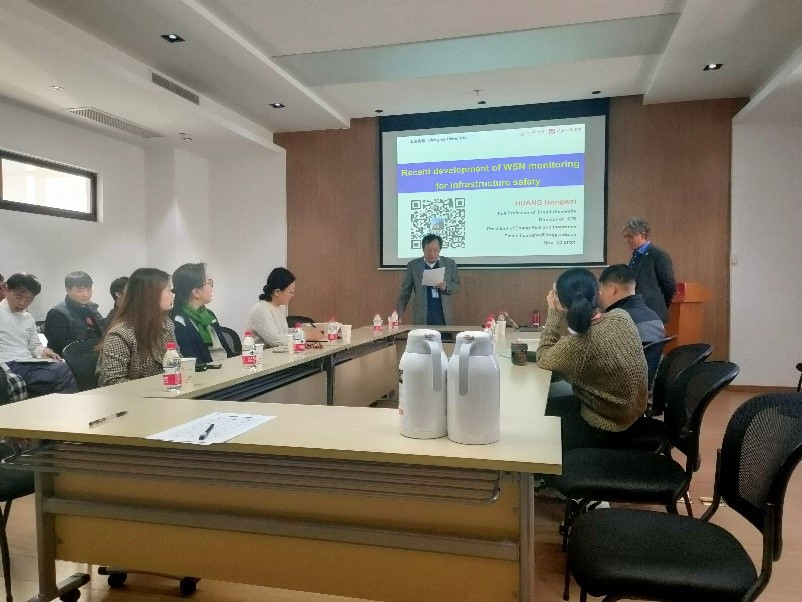 2021年11月24日下午,宝山校区东区土木楼312室,教育部“长江学者”、同济大学黄宏伟教授应邀来我校讲学。黄宏伟教授以“The Development of WSN Monitoring for Infrastructure Safety”为题为土木工程系师生作了精彩学术报告。学术报告由张孟喜教授主持。