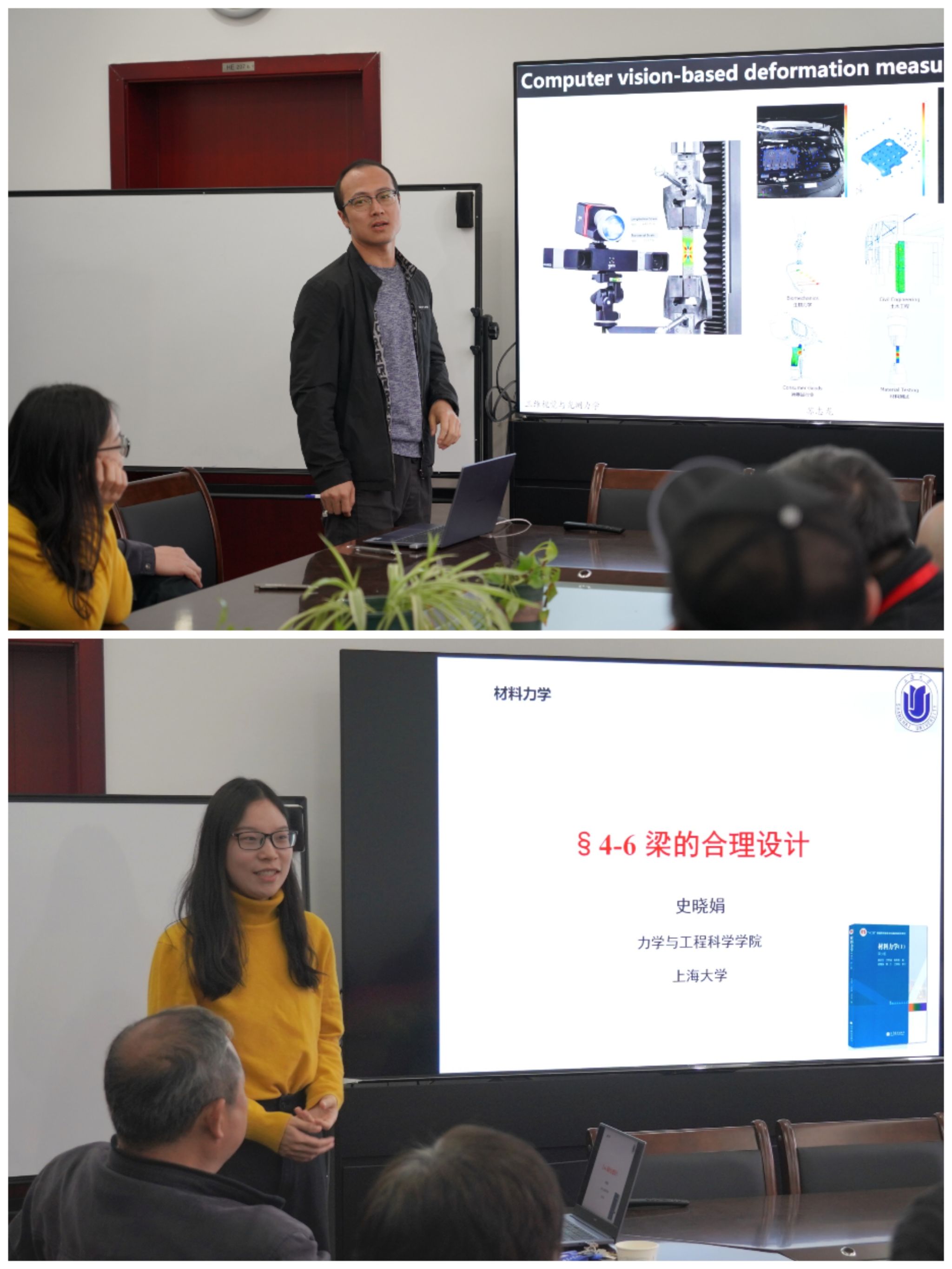 会议第一个环节为新进教师教学试讲,该活动是力学专业教学传统,要求新进教师在正式授课之前进行公开试讲,帮助新教师尽快适应本科教学。本次试讲,苏志龙老师进行了20分钟“实验力学中的光测技术”教学试讲,史晓娟老师进行了20分钟“梁的弯曲强度设计”教学试讲。参会教师对试讲教师进行点评,认为试讲教师具有较好的基本教学素质,教学语言使用合理,教学讲解清晰,PPT整洁美观。同时,也对试讲表现的一些教学组织和内容上的不足提出了建议。鼓励新教师充分利用自身优势,尽快提升教学能力水平,开展高质量的本科教学,促进学校人才培养。
