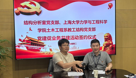 9月3日下午,力工学院土木工程系教工结构党支部与上海核工程研究设计院有限公司土建公用设施所结构分析室党支部,开展主题党日活动兵举行党支部共建签约仪式。学院党委副书记、纪委书记丁珏,学院纪委委员、土木工程系党支部书记何文福,学院党委委员、党委组织员裴志茹,土木工程系副主任赵慧玲,土木工程系骨干教师、结构党支部党员张强、许浩,上海核工院土建公用设施所结构分析室支部书记柳胜华、支部副书记罗刚、宣传委员杨杰、组织委员彭晓平等出席了本次活动。活动由结构分析室支部副书记罗刚主持。