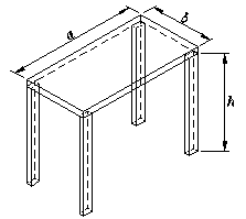 长 a = 2 m,宽 b = 1 m,厚 t = 0.01 m 的薄钢板由四根截面为 0.03 m×0.04 m ,长为 h = 1 m 的梁支撑,四梁与地面固定。已知板、梁所用材料相同,弹性模量 E = 100 MPa,泊松比 m = 0.2,薄板表面受有均布法向压力 q = 1 MPa,试求该板中心的位移。
