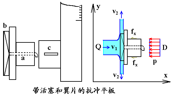 的方向离开抗冲平板。抗冲平板在射流冲力和测压管7中的水压力作用下处于平衡状态。活塞形心水深
