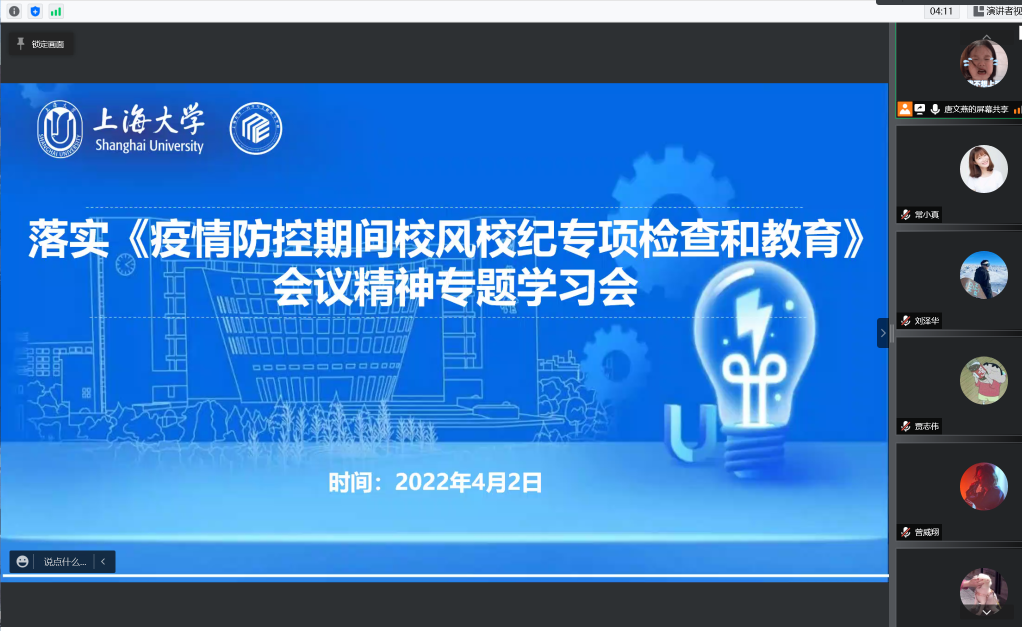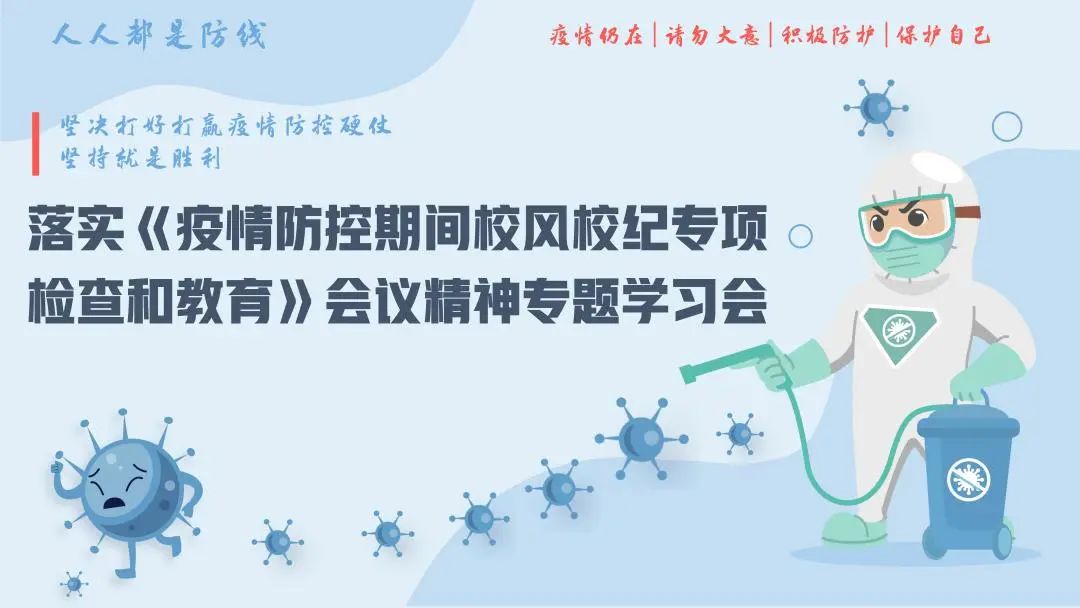 结合学校疫情防控期间校风校纪专项检查和教育会议上的讲话精神与工作要求,学院党委面向在校学生以不同的形式组织开展疫情防控期间校风校纪专项检查和教育,切实强化学生的纪律意识,遵守疫情防控要求,做平安校园的守护者。